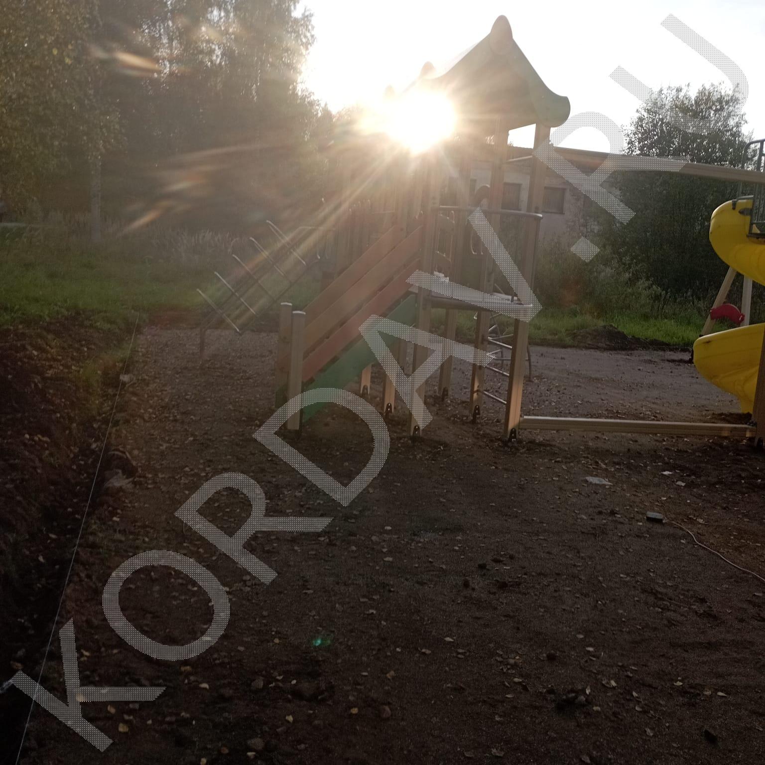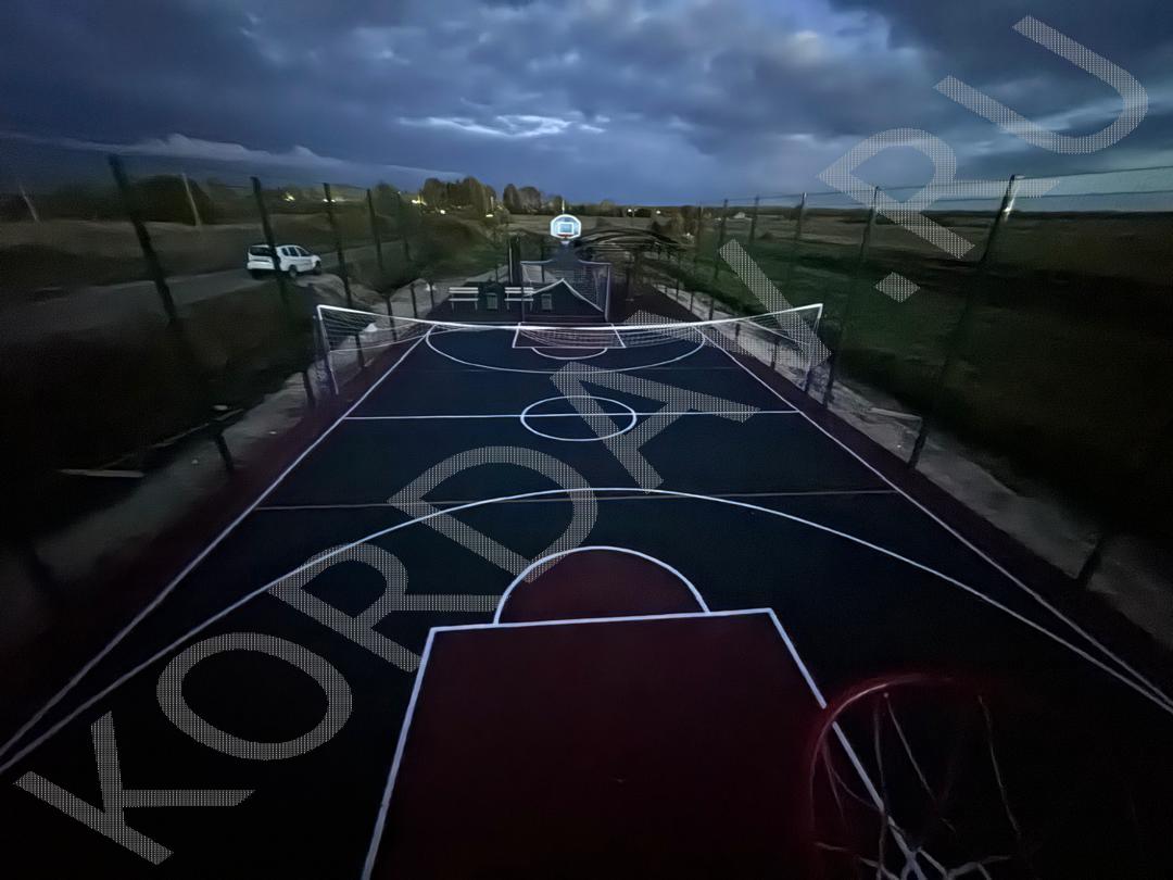 Совмещённые детская и спортивная площадки. Использовано оборудование: